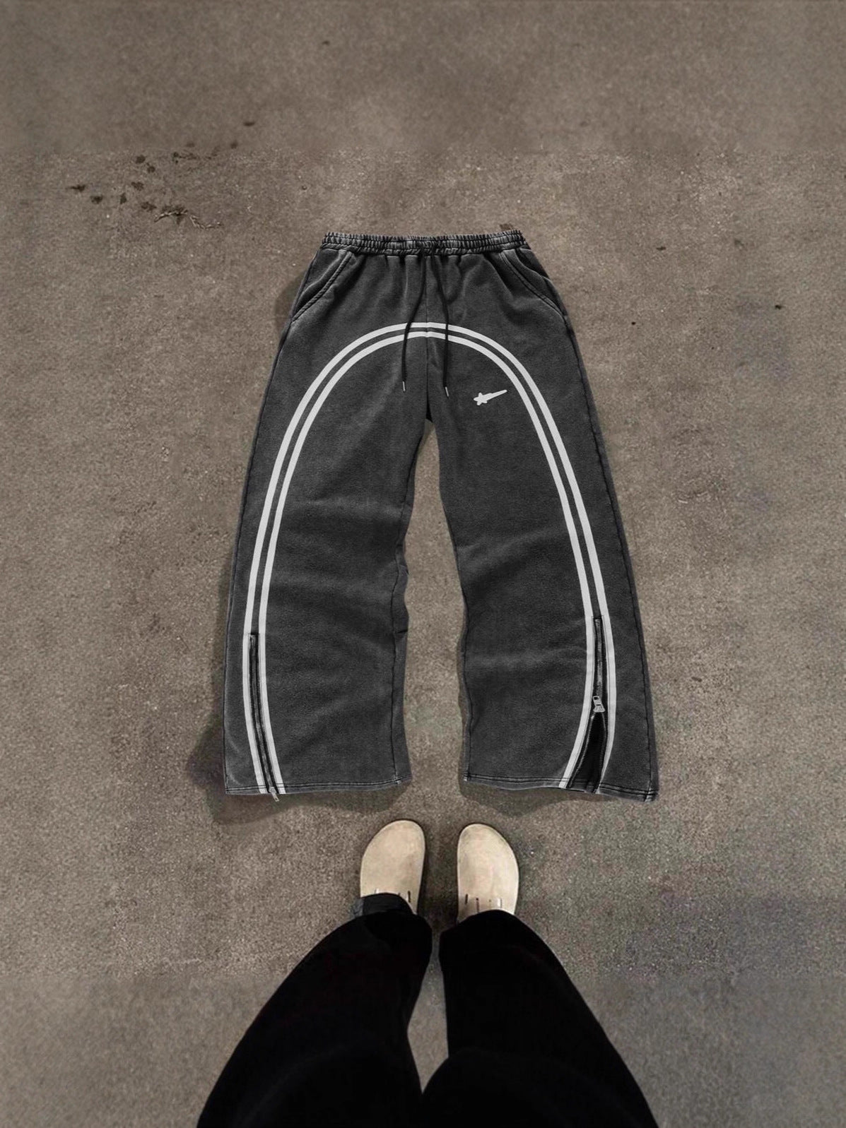 Designed with a washed finish, they feature contrast white piping and zip accents that subtly elevate a classic athletic silhouette.